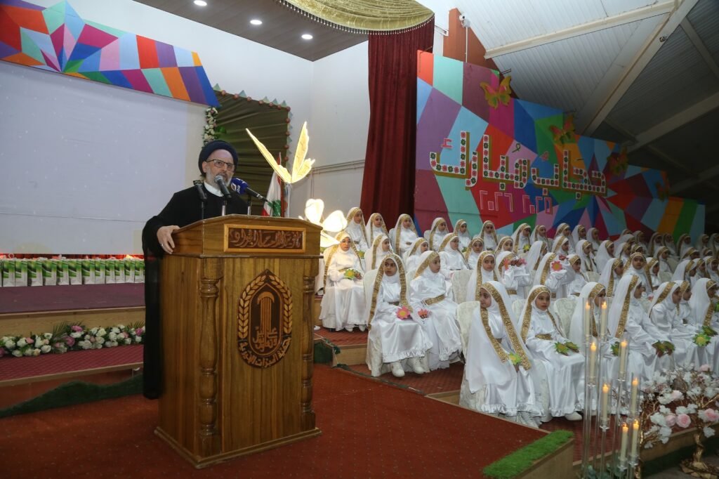وتابع سماحته: “نحن اليوم عندما نحتفل بهذه الكوكبة من طالباتنا، فليس الأمر مجرّد احتفال ببلوغهنّ التكليف الشرعي، بل يتجاوز ذلك إلى تحمّلهنّ مسؤولية الارتباط بربّهنّ، من خلال إخلاصهنّ في عبادته والتعبير عن حبّه عبر سلوكهنّ وحركتهنّ ومحبتهنّ لجميع الناس. فلا يمكن لإنسان يرتبط بالله إلّا أن يكون معطاءً وصادقًا وخيّرًا للجميع. ولا يمكن لنا نحن الذين نهتدي برسول الله، إلّا أن نحبّ جميع الأنبياء الذين سبقوه، فهو جاء امتدادًا لكلّ الرسالات السماوية”.
