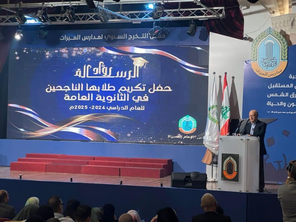 نظمت ثانوية الإمام الحسن احتفالاً تكريمياً لطلابها الناجحين في الشهادة الثانوية للعام الدراسي 2024 – 2025 برعاية مديرعام المبرات الدكتور محمد باقر فضل الله، وحضور مدير الثانوية الأستاذ فايز جلول، مديري الحلقات، النظار، المنسقين، المعلمين والأهالي، وذلك في قاعة الزهراء الملحقة بمجمع الإمامين الحسنين.